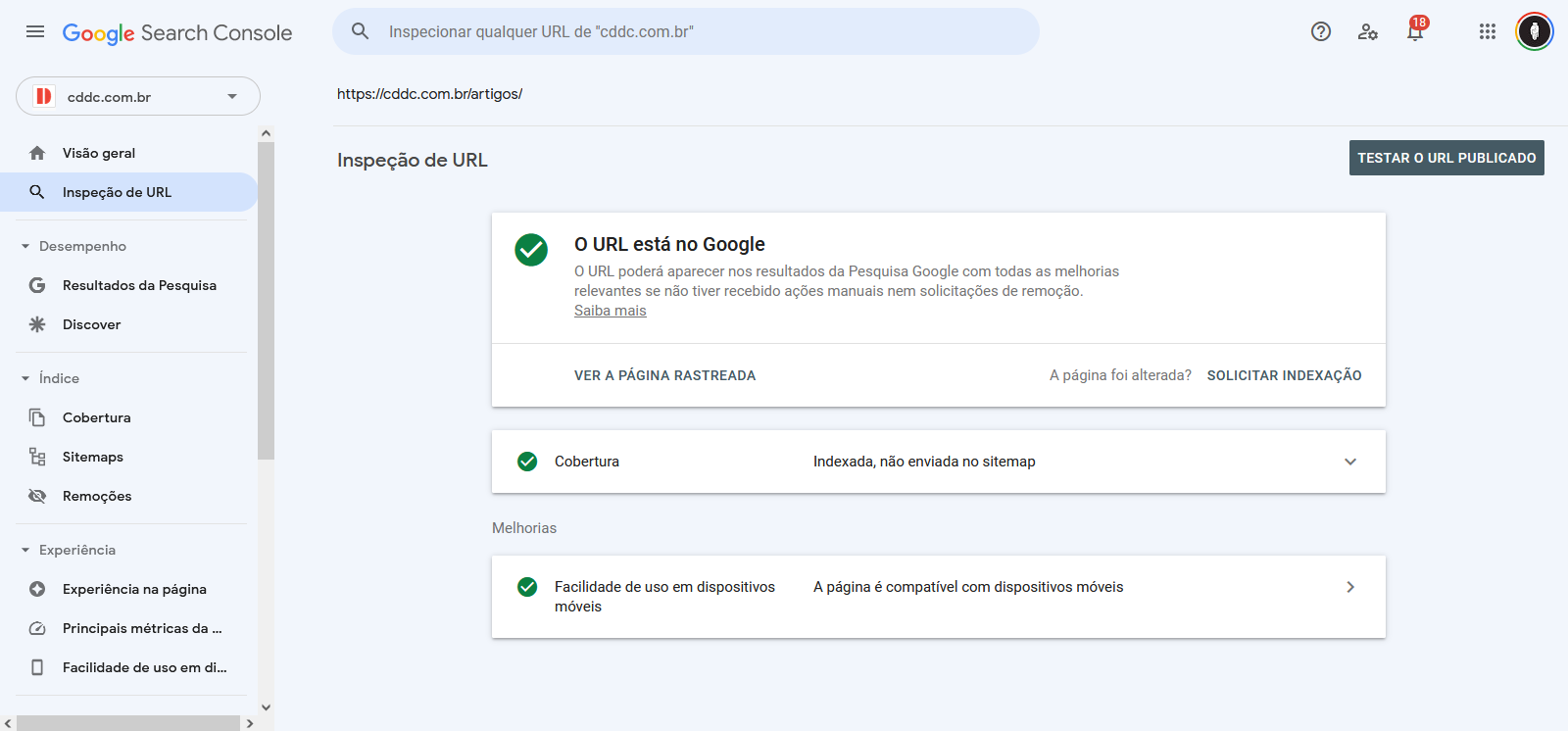 - Páginas válidas: O Google consegue ler e indexar sua página para exibí-las nas pesquisas.