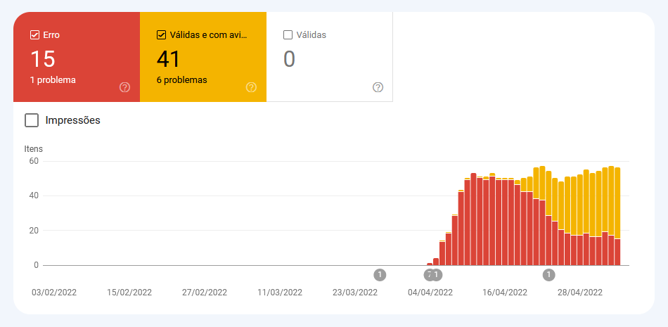 - Páginas com avisos: O Google consegue ler e indexar sua página, mas possúi algumas recomendações e melhorias .